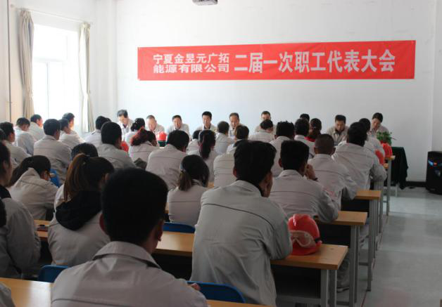 2018年10月16日下午14時,寧夏金昱元廣拓能源公司二屆一次職工代表大會在化工公司調度室召開。會議由黨總支書記副總經理馬建東主持。集團公司黨委副書記、工會主席王立軍及各子公司、職能部室職工代表共108人參加了會議。