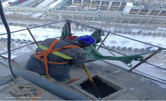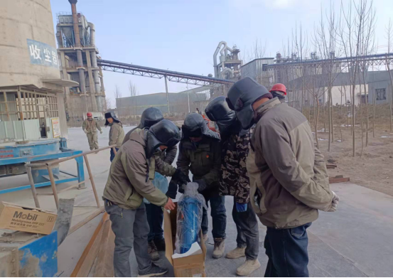 檢修人員鉆進(jìn)預(yù)熱器檢查門(mén)子是檢修預(yù)熱器管道的“必經(jīng)之路”,也是支撐徹底完成預(yù)熱器檢修的關(guān)鍵環(huán)節(jié)。因?yàn)闀r(shí)間緊、任務(wù)重,為了不影響檢修進(jìn)度,檢修人員常常進(jìn)去干干凈凈,出來(lái)時(shí)灰土灰臉,不得不輪番上陣,從上到下,完成結(jié)皮清理。他們四人一組,從安全監(jiān)護(hù)到技術(shù)指導(dǎo),干一干,歇一歇,接著再繼續(xù)……即便是當(dāng)前零下十幾度,也能干出一身汗,喝口水的功夫,滲出的汗液就能結(jié)成冰。