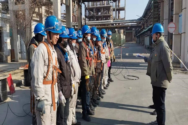 元旦過后,裝置領(lǐng)導(dǎo)開會安排放置光纖的任務(wù),各級人員迅速投入其中,每天臨近上午下班前,相關(guān)班組辦理好登高證、檢修作業(yè)證、作業(yè)方案及工作危害分析,把需要放置的光纖盤拉到指定位置擺放整齊,準(zhǔn)備好五樁一門和警戒帶,下午1點(diǎn)30分,所有作業(yè)人員系好安全帶,戴上防毒口罩、棉帽子到達(dá)現(xiàn)場,落實(shí)完各項(xiàng)安全措施,確認(rèn)具備條件,作業(yè)負(fù)責(zé)人現(xiàn)場進(jìn)行安全技術(shù)交底,交底完畢后,大家有序地爬上橋架,下面的人有拉光纖的,做標(biāo)記的,往上送的,口哨一響,大家鼓勁使力、齊步向前,光纖一段一段整齊的放置于橋架內(nèi),在這幾天放置光纖的過程中,乙炔站和六萬噸離子膜光纜距離較長,好幾位年長的師傅并沒有因?yàn)槟挲g大而推脫,同樣是系好安全帶,穿戴齊全防護(hù)用品,早早地上到橋架上,找到合適的位置,安全帶系掛牢靠后,聽從指揮,保證了放置光纖的任務(wù)提早完成。