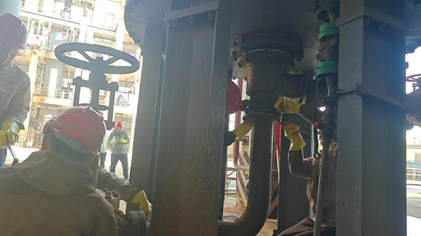 本次檢修任務(wù)繁重,但檢修人員卻干勁十足。他們有的拆卸螺栓,有的進(jìn)行吊裝,有的開(kāi)展焊接……他們配合默契,動(dòng)作精準(zhǔn),工作井然有序。他們以勇于擔(dān)當(dāng)?shù)呢?zé)任感和時(shí)不我待的使命感攻克難關(guān),用實(shí)際行動(dòng)勾勒出了一幅幅彰顯勞動(dòng)之美的畫(huà)卷。