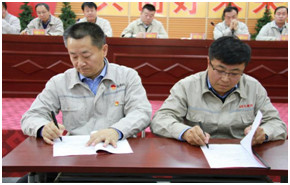 為了進(jìn)一步明確權(quán)責(zé),強(qiáng)化各級(jí)管理人員的責(zé)任意識(shí),提高履職能力,會(huì)上,集團(tuán)公司各級(jí)主管領(lǐng)導(dǎo)簽訂了《2019年經(jīng)營(yíng)管理目標(biāo)責(zé)任書》和《2019年安全環(huán)保目標(biāo)責(zé)任書》。