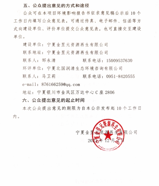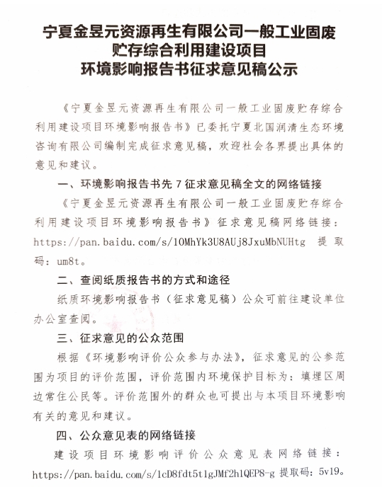 寧夏金昱元資源再生有限公司一般工業(yè)固廢貯存綜合利用建設(shè)項(xiàng)目征求意見(jiàn)稿公示