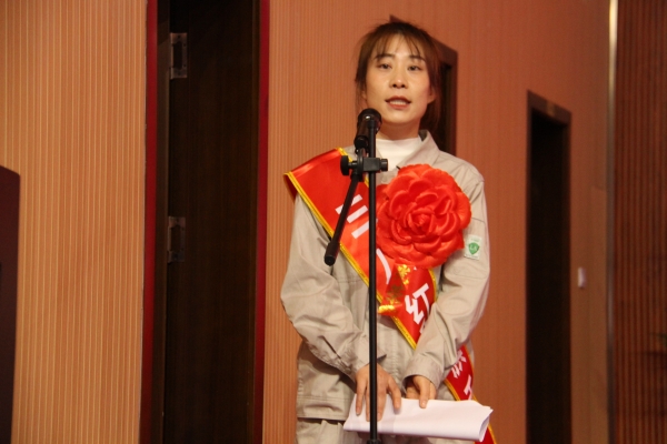女職工代表楊芙蓉發(fā)言。她向集團公司對廣大女職工們的關愛表示衷心的感謝,為企業(yè)給她們提供實現(xiàn)自身價值的廣闊平臺表示誠摯的謝意。她號召全體女職工共同努力,勇挑重擔、務實苦干,為開創(chuàng)金昱元更加輝煌燦爛的明天踔厲奮發(fā)、不斷前行。