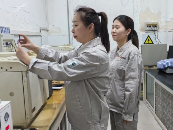 重崗受任,不辱使命。2012年,妥玉英被調(diào)到分析崗位,這一干,就是13年。在分析崗位上,她對待取樣、分析、復(fù)檢等工作一絲不茍。她的專注就像一位技藝精湛的工匠對待自己的作品,不容許有絲毫瑕疵。慢慢地,憑借過硬的專業(yè)技能,她從一名普通的分析工成長為分析班長。自此,她深知自己肩上的擔(dān)子和責(zé)任更加重大。她明白,要當(dāng)好班長,帶好隊伍,必須做到更加“高”“精”“專”。于是,查書籍、勤琢磨、多對比成了她攻克技術(shù)難關(guān)的訣竅。她如同一只勤勞的蜜蜂,腳勤、嘴勤、腦勤,在班組里樹立了模范標(biāo)桿,同時帶出了一支作風(fēng)過硬的分析化驗隊伍。